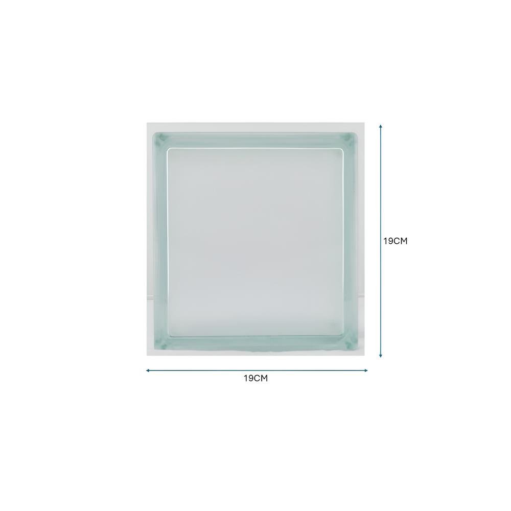 The clear glass block measures 19x19x8 cm, providing a versatile size for various architectural and decorative applications.